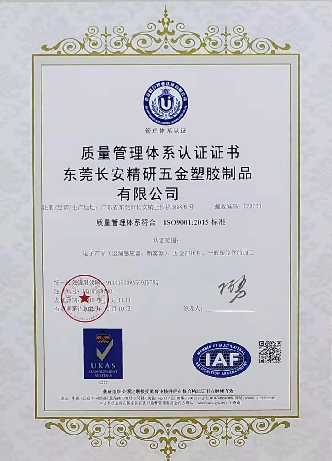 东莞长安精研五金塑胶制品有限公司成立于1989 年,位于广东省东莞市长安镇。员工有200人左右,厂区占地12,000平方米。是专业的五金塑胶制品,电子/工业消费品和暖通家用电器等产品的定制化设计及生产的制造商。
